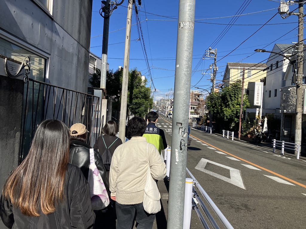 このたび、自由が丘駅から広域避難場所である「駒沢オリンピック公園」までの避難経路を確認する防災訓練に参加しました。途中、八雲給水所に立ち寄り、災害時の給水ポイントについての説明を受けました。