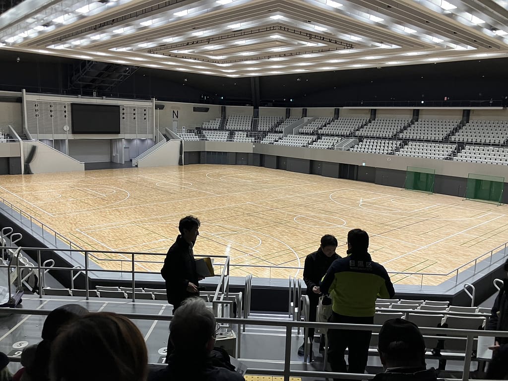 また、駒沢オリンピック公園では、防災トイレの使用方法や、避難場所として利用される体育館内の防災設備を見学し、緊急時の対応について理解を深めることができました。
